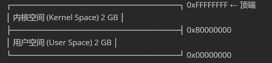 - 在 32 位系统中,虚拟地址是 4 GB(2³² = 4 GB):